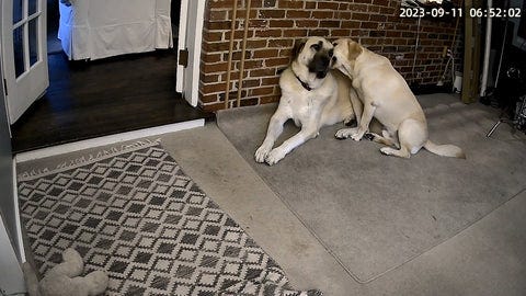 So, the good news is that while ear-licking itself is not inherently dangerous, it's essential to be aware of the overall context and the dogs' behavior to ensure a safe and positive interaction. With that in mind, we'll keep an eye on Mo and Lew – or should we say, the camera will be keeping an eye on them.