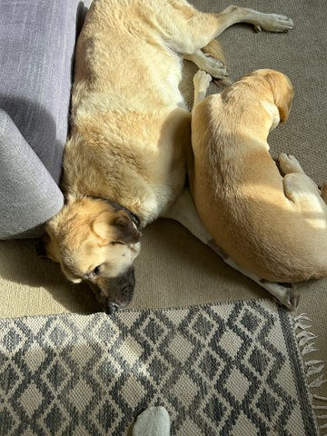 But first, we did some research. We learned that dogs may engage in sucking behavior for various reasons, and it can manifest in different ways, such as sucking on stuffed animals (Lewie does this too), blankets (do shirt sleeves count?), or even another dog's ear (holy Moses!).